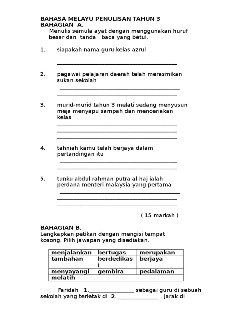 Lembaran Kerja B Melayu Tahun 2. Ujian akhir tahun tahun 4. Lembaran kerja latihan bahasa melayu tahun 3 bina ayat.